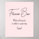 Panneau d'affichage pour bar à fleurs rose blush pour mariage en écriture calligraphique élégante. Ce produit fait partie d'une collection, veuillez consulter notre collection en magasin ci-dessous pour trouver des articles assortis.