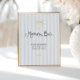 Douche de mariée à la main en gros signe de barre mimosa avec un citron dessiné à la main avec un arc et des bandes d'aquarelle bleu doux