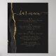 Un panneau élégant pour votre menu de bar mariage. Les mots "menu barre" apparaissent dans la calligraphie d'écriture manuscrite couleur or avec des swashes au début et à la fin, avec le texte personnalisable ci-dessous. Un motif d'aquarelle noir orné d'une fausse parties scintillant dorée orne la bordure gauche sur un arrière - plan noir en ardoise. Voir notre collection pour la suite de faire-part de mariage et la papeterie de jour correspondant.