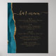 Poster Barre mariage Menu Turquoise Bleu Or Agate Bleu fo