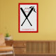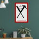 Bats croisés de baseball et affiche personnalisée rouge casquette, affichant une icône de pictogramme minimaliste de chauves-souris croisées en noir, une balle, un casquette et votre texte rouge sur arrière - plan blanc avec bordure rouge. Personnalisez-le et changez le texte avec monogramme, nom ou message. Ce design moderne et minimaliste est un cadeau parfait pour le joueur de baseball de votre vie. Découvrez de nombreux modèles dans notre magasin de cadeaux sportifs.