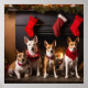 Une scène enchanteresse capte l'essence de l'esprit de fête et de douceur tandis que des compagnons furieux ornés de casquettes du Père Noël se rassemblent autour d'une cheminée crépitant. La chaleur qui émane du foyer crée une atmosphère douce pour ces adorables canines, tandis que des bas festifs pendent dans l'arrière - plan, renforçant l'ambiance joyeuse. Cette charmante illustration représente une image intemporelle de compagnie et de joie festive, parfaite pour célébrer la saison des Fêtes avec une touche de charme canin.