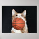 Le chat-chaton, un tabby orange et blanc, joue au basket-ball dans cette affiche photo. Dimensionné pour 14x11 mais peut être modifié