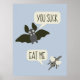 Cette affiche amusante est parfaite pour ajouter de l'humour biologique à votre mur. Il comporte une batte de bande dessinée disant "Vous avez la chance" à un moustique de bande dessinée qui répond "Mange-moi". Contre un arrière - plan bleu clair.