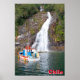 Un bateau de pêche photographié sur fond de cascade ; le fjord Quintupeu, Patagonie du Nord, Chili - un beau coin de l'Amérique du Sud où les Andes plongent dans l'océan Pacifique. [Nos photos de voyage et nos modèles sont disponibles comme cadeaux pour la maison, cartes, puzzles de scie, mur art et plus]