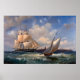 Un beau voilier avec toutes les voiles et le drapeau suédois. L'affiche est une peinture d'art numérisée du 19ème siècle réalisée par le peintre suédois Arnold Plagemann.