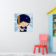 Un design mignon avec un joueur de baseball en uniforme bleu et blanc et tenant une batte de softball. L'arrière - plan présente une starburst dans les tons bleus. Parfait pour le jeune garçon qui aime le baseball et le tee-ball.