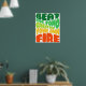 Poster design ; slogan inspirant. "Battez la forme, créez votre propre feu". Design typographique en vert, jaune et rouge.