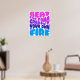 Poster design ; slogan inspirant. "Battez la forme, créez votre propre feu". Design typographique en rose, violet et bleu.