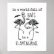 Illustration de 2 squelettes de flamants entourés de chauves-souris avec "Dans un monde plein de chauves-souris être un flamant"