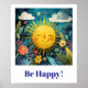 Poster Be Happy! Smiling Sun in Garden.