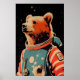 Poster Bear Astronaut Poster, Bear Retro Print, Brown