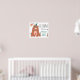 Voici une adorable affiche de la crèche pour bébés qui a un thème coloré et un message positif, aussi ! Il est orné d'un mignon ours brun habillé de coiffure tribale, de perles et de plumes. Il tient une plume de style boho orange et bleu, et un oiseau orange et turquoise perche sur sa jambe. A côté de lui se trouve une image de coeur avec une flèche à travers elle. Le texte en haut en noir dit "SOYEZ BRAVE petit", et en dessous, en turquoise, "Rêvez des choses merveilleuses que vous FEREZ !" La partie inférieure du texte peut être customisée. À la droite se trouve une flèche pointant vers le haut avec une plume de style boho en turquoise, or et rose.
