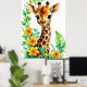 Poster Beau Animal Giraffe Aux Fleurs Oranges