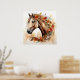 Poster Beau Cheval aux jolies fleurs Aquarelle
