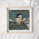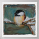 Mignonne affiche de poulet à capuchon noir en hiver. Le dessin de cette affiche est celui d'une adorable poule d'hiver, un morceau de média mixte créé à l'aide d'acryliques, de papier et plus encore. Parfait pour les amoureux de la nature et des oiseaux ! Cette oeuvre d'art est également disponible sur d'autres produits pour le mixage et la mise en correspondance! Art de Jenn Steffen.