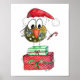 C'est une peinture médiatique mixte originale d'un oiseau de Noël sur une pile de cadeaux.