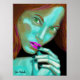 Une belle peinture digitale d'une belle fille, aux couleurs vibrantes et fluorescentes. Les yeux verts, la peau turquoise et les cheveux colorés. Sensuel, mystérieux et artistique. Portrait peint Numériquement, pour les amateurs d'art contemporain.