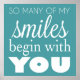 Un moyen peu coûteux d'égayer votre crèche ou les murs de la chambre / salle de bain de votre enfant. Ceci dit, "tellement de mes sourires commencent par vous". N'oubliez pas de consulter nos affiches connexes pour un ensemble d'art mural parfaitement assorti!