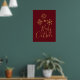 Une affiche avec une illustration de flocs de neige dorés de fantaisie aux formes cristallines élégantes. La typographie branchée dit : Bébé il fait froid dehors. Arrière - plan rouge foncé.