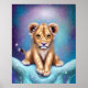 Poster Bébé mignon Lion Cub Arrière - plan neigeux