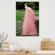 Belle affiche couleur rose plumes Peacock Oiseau.
