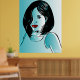 Cette affiche présente une illustration vectorielle originale stylisée d'une jolie femme avec une coiffure luxuriante dans les tons bleus. Fabrique une superbe illustration murale originale pour un salon de beauté ou votre maison.