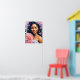 Cette oeuvre de portrait floral présente une magnifique femme noire souriante ornée et tenant des hortensias. Un tableau lumineux, coloré et joyeux, avec du rose, du bleu, de l'orange, du perwinkle et du rouge.