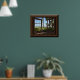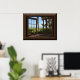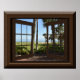 Cette affiche présente une belle scène de palmiers tropicaux et l'océan à travers une fenêtre ouverte.