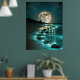 Poster Belle Pleine lune Plage Océan étoile Nuit