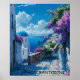Affiche élégante et branchée de Santorin Greece montrant l'architecture unique et la vue sur la côte grecque de l'île. Grand souvenir et idée cadeau pour chaque touriste.