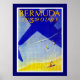 affiche de voyage aérien vintage faisant la promotion des premiers vols d'avion à hélice vers les Bermudes.