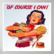 Bien sûr, je peux envoyer un texte rouge avec une femme et une femme qui met la nourriture en conserve avec tablier.
