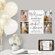 Bienvenue aux invités à une célébration élégante de shower de mariage avec un élégant poster personnalisé de 4 photos en collage de 18"x24". Les images et tout le texte sont simples à personnaliser. Le thème de fête "brunch & bubbly" peut être facilement supprimé ou changé en une autre idée telle que le bonheur dans le jardin, la fête de thé dans le jardin, le chic bohème français, de demoiselle à Madame, la romance parisienne, etc. Le design moderne minimaliste noir et blanc présente quatre images de votre choix, un style de calligraphie manuscrit chic et une typographie vintage élégante. Ce panneau de bienvenue pour la fête de mariage est un moyen élégant de partager des photos de fiançailles dans le cadre de la décoration de votre journée spéciale. Félicitations à la mariée !