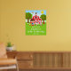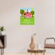 Ce panneau de bienvenue mignon et amusant présente une fille aux cheveux bruns avec une peau claire à côté d'une grange rouge avec une girouette coq. Il y a des animaux de ferme adorables tels qu'une vache, un cochon et une poule. En arrière-plan, on voit un ciel bleu vif, des pommiers, du soleil, des papillons et des marguerites. Le texte combine des polices grasses et sans serif pour un look stylé et moderne. C'est parfait pour une fête d'anniversaire sur le thème de la ferme.