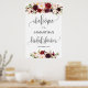 Bienvenue à la réception de mariage bohème rustique marsala florale pancarte 24x36 grande affiche grand format,