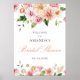 Signe de bienvenue pour la réception de mariage romantique avec fleurs estivales et rose pêche.