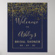 Bienvenue à la soirée de mariage chic bleu marine confettis or