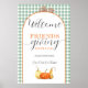 Dites Bienvenue aux invités lors de votre fête de Thanksgiving avec ce magnifique signe d'action de grâce d'automne. Ce panneau en mousse présente des feuilles et des citrouilles modernes et élégants de couleur automne avec un arrière - plan à nappes à damiers. Customisez simplement avec vos informations et vous êtes tous prêts à partir !