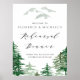 Panneau de bienvenue au dîner de répétition sur le thème de la forêt avec des arbres et des montagnes à l'aquarelle verte. Ce panneau de bienvenue fantaisiste est parfait pour les dîners de répétition de printemps, d'automne et d'hiver. Il sera également parfait pour les mariages sur le thème de la forêt et des bois. Des articles assortis sont disponibles.