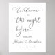 Élégant panneau de bienvenue pour la veille de la cérémonie / Panneau de bienvenue pour le dîner de répétition. Les noms de la mariée et du marié sont écrits dans une police de caractères reliés par un cœur. Si vous souhaitez utiliser cette police calligraphique, veuillez me contacter pour modifier les noms. Sinon, vous pouvez ajuster le texte en fonction de vos besoins.