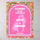 Poster Bienvenue Bold rose orange rétro Mariage d'arc flo