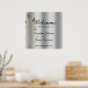 Poster d'accueil simple, élégant, chic mariage en argent avec des tourbillons dorés et un script de calligraphie moderne.