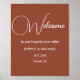 Panneau de bienvenue de mariage Terracotta avec une belle police blanche sur fond marron ou orange brûlé. Découvrez plus de produits avec ce design dans la collection ci-dessous.