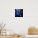 A luminous electric-blue bloom glowing in sharp focus against a blurred twilight city intersection—a striking urban nature art print of resilience