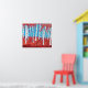 Peinture acrylique originale des bouleaux en automne avec des feuilles rouges vibrants imprimés sur papier.