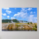 "Biscuit Basin Riverside View, Yellowstone National Park, Wyoming" par Catherine Sherman. La vapeur s'élève des évents géothermiques dans un paysage rocheux du Biscuit Basin, à côté de la rivière Firehole dans le parc national de Yellowstone, Wyoming, avec en arrière-plan une forêt verdoyante sous un ciel bleu vif avec des nuages fluides. L'eau des sources chaudes et des geysers se jette constamment dans la rivière Firehole. Biscuit Basin est un groupe thermique isolé de geysers et sources chaudes intéressants et fait partie du bassin supérieur de Geyser. Si vous regardez attentivement, vous pouvez voir les touristes sur une promenade de bord sur le côté droit de la photo, a été pris Septembre 9, 2022. Une explosion hydrothermique s'est produite vers 10 heures du matin, le 23 juillet 2024, dans le Biscuit Basin, une collection de sources chaudes à quelques kilomètres au nord du célèbre Old Faithful Geyser dans le parc national de Yellowstone, dans le Wyoming. Biscuit Basin a été fermé pour le reste de l'été. Des explosions similaires ont eu lieu dans le bassin de Biscuit en 2009, 1991 et après le tremblement de terre de magnitude 7,2 du lac Hebgen, à 40 milles (64 kilomètres) de distance, en 1959.