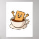 Illustration humoristique d'un biscuit à l'expression effrayée, qui s'enfonce lentement dans une tasse de café chaud. La scène combine comédie et drame, dépeignant le destin tragique mais drôle du biscuit, car il ne résiste pas à la chaleur de la boisson. Parfait pour les imprimés T-shirts, autocollants ou contenus sur les médias sociaux qui mêlent humour et amour pour le café.