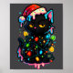 Poster Black Cat Christmas Ice Cream Drip Santa Hat Cute