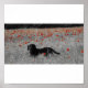 Un beau labrador noir en noir et blanc avec une touche de couleur parmi les coquelicots.